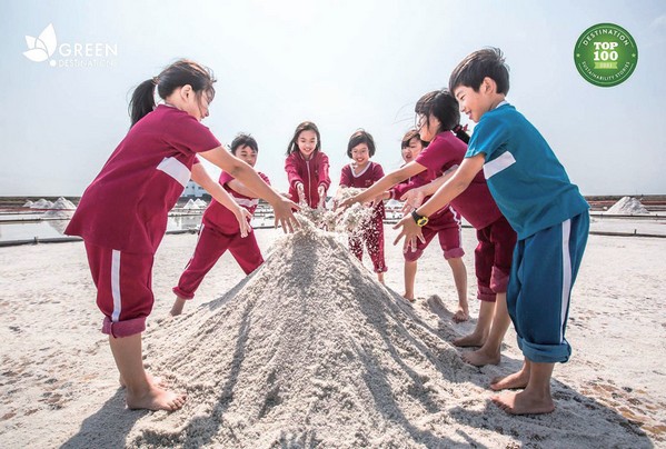 這項認證競賽共分3階段,第一階段必須 完成6大類100項永續指標中的30項, 才能獲得第入第二階段的「最佳永續故事比 賽」。雲嘉南風管處今年以「被遺忘的白 色時光—井仔腳鹽田文化重振」故事,與 全球其他45個國家共160個旅遊目的地故事 一同競賽,榮幸入選「全球最佳百大永續故事」。