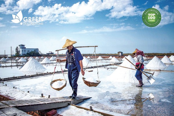 井仔腳瓦盤鹽田是台灣現存最古老的鹽田,不僅將特殊的瓦盤鹽田保留下來,並且 延續百年的曬鹽技法,更透過環境教育課程,傳承及宣揚日益式微的曬鹽文化。引進 民間資源開發多元的「鹽」文化商品,結合 當地社區、旅遊業透過「平安 鹽祭」活動廣為宣傳,成功打 造為一個兼具文化保存、環境 教育的永續旅遊目的地,並獲 得國際綠色旅遊目的地基金會 的認可入選為2021年世界百大 永續旅遊目的地最佳案例。