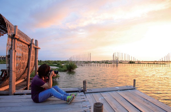 ▲漫遊成龍溼地拍攝地景藝術夕照美景。
