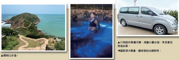陳依福指出,目前市面上的馬祖旅遊產品,在交通上都要乘 坐島上的公車作為接駁,旅客不但不能放置個人物品,也必須 受限公車的時間,無法盡興感受、深度體驗景點特色。因此, 晴天旅遊自己租用6輛9人座休旅車,3輛在北竿,3輛在南竿, 提供6位旅客乘坐,每次出團不超過18人,維持旅客乘車的舒 適度,並聘請曾接待過元首級人物的金牌導遊、網紅,來當導 覽人員兼司機(皆取得駕駛執業執照),等於每次出團,包括 隨團領隊,以及當地地陪,加上3位司導,都有5人團隊齊心服 務,提高客服比例。此外,3台車也更具彈性,有些旅客想要 留久一點,有些旅客想要走下一個行程,都能隨機應變、改變 規劃。