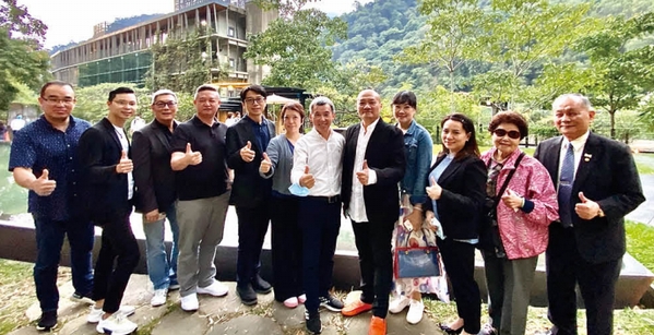 ▲泰安觀止董事長江德利(中)為飯店同業介紹泰安觀止,彼此互相交流。