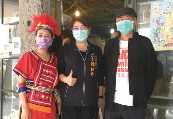 ▲(左起)中城再生文化 協會秘書長陳冬梅、台中 市政府文化局局長陳佳君、中城再生文化協會理事長蘇睿弼。