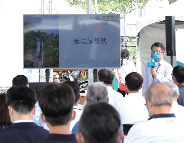 臺鐵局局長杜微表示,臺鐵局以不同 定位的觀光車輛來推動鐵道觀光旅遊,鳴 日號美學觀光列車2021年初跨年開始營運,廣受好評及歡迎,現在推出藍皮解憂號觀光列車,定位在懷舊、解憂及漫行平價 輕旅行;2022年中將陸續推出山嵐號及海 風號觀光列車,定位在下午茶服務平價奢華輕旅行。