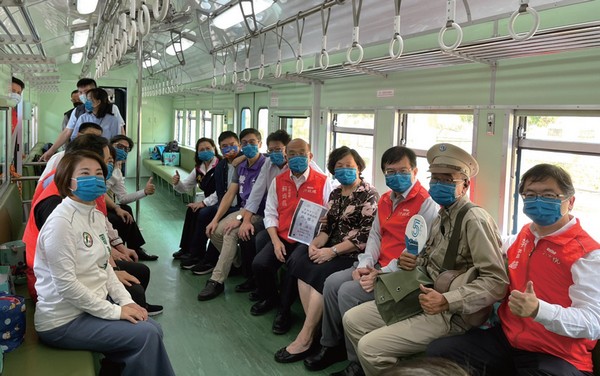 ▲1 0 ╱ 2 3藍皮解憂號首航典禮, 行政院院長蘇貞昌( 右5 ) 與夫人、貴賓一起搭乘體驗。