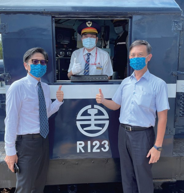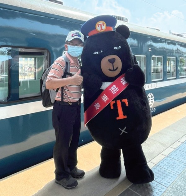 ▲臺鐵局附業營運中心總經理陳文川與喔熊車長合影。