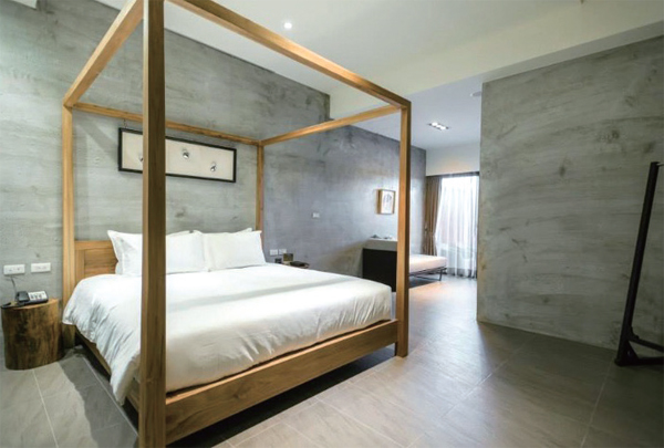 由於松邑莊園經營者家族便投身於建築業中,因此 對於建材選擇、設計上格外堅持,飯店的外觀採 用綠建築設計,清水模、蛇紋石、檜木、鏽板石等建 材,則分散於建築內部客房、湯屋的每個角落,以簡單 卻不失沉穩的風格,位旅客營造最放鬆的空間。