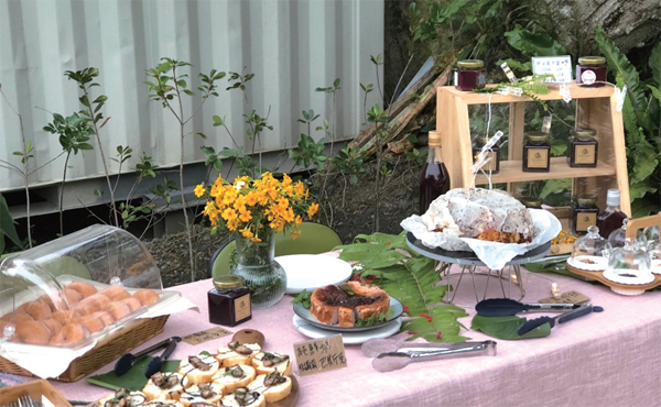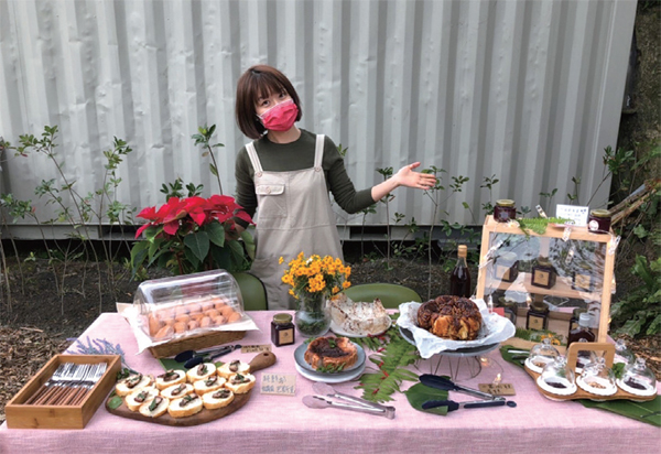 她特別將樹葡萄製作成酸酸甜甜的果醬或釀酒,藉此延 長產品的效期,讓消費者能搭配著優格、麵包一同享用。 三代務農也提供如咖啡、肉桂捲、司康、貝果等選擇,讓 民眾透過味蕾好好認識腳下這片土地。