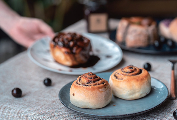 值得一提的是,王筱棋特別將 樹葡萄熬成濃縮汁,並加入在地鮮 奶,打造出類優格的酸甜口感,搭 配著三代務農出品的樹葡萄果醬佐 肉桂捲、司康、貝果,此時賓客的 味蕾正體驗一場華麗的饗宴,眼前 的花蓮自然景致同樣美不勝收,絕 對讓人難以忘懷。