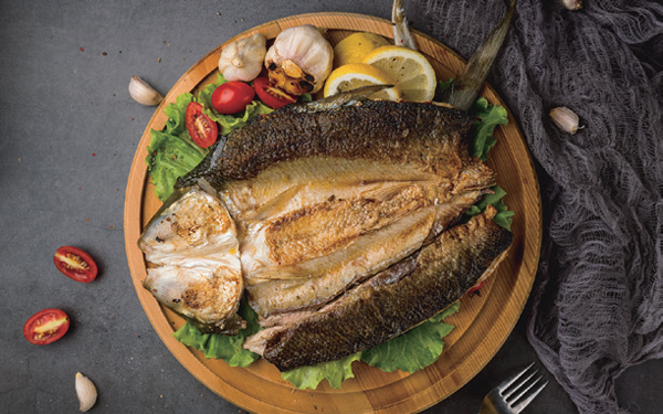 乾煎虱目魚 虱目魚乾煎得十分香嫩,油脂豐厚,肥 滋滋的吃起來好過癮。而且經過無刺處 理,大人小孩都超愛。