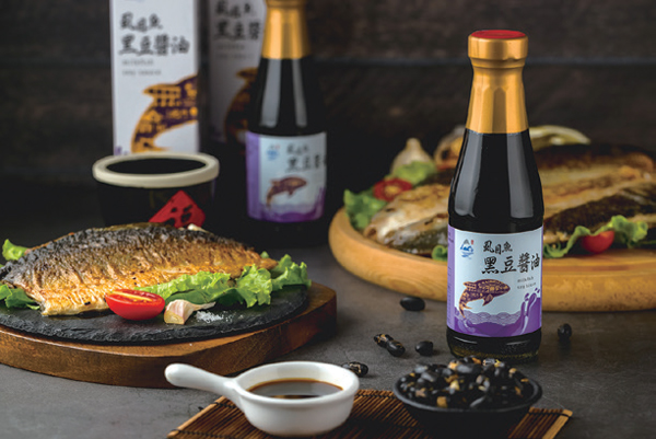 虱目魚黑豆醬油 採用新鮮沒有腥味的虱目魚精,加上嚴 選黑豆,經過處理,等待時間醞釀出 香、醇、甘、甜,晶瑩剔透如琥珀般的 手工醬油。