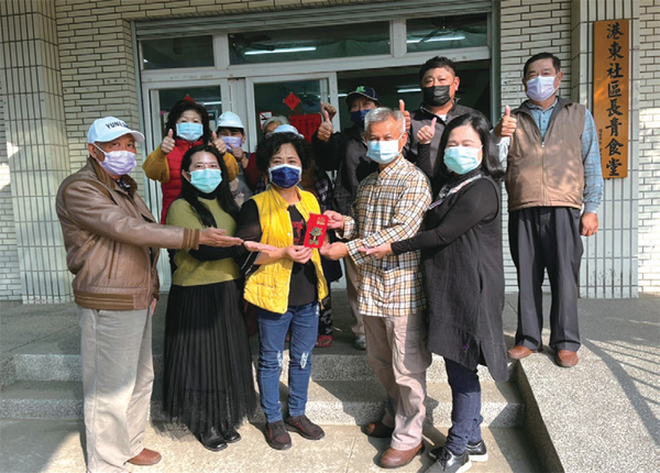 ▲口湖鄉金湖休閒農業發展協會將獎勵金致贈予港東社區長青食堂。
