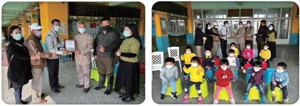 此次受贈經費的學校金湖國小及港東社 區長青食堂、梧北社區長青食堂、梧南社 區長青食堂,分別捐贈2萬元學程體驗經費 及1萬元長青食堂加菜金,後續還有崇文國 小及台興國小2所學校,將再擇期進行。