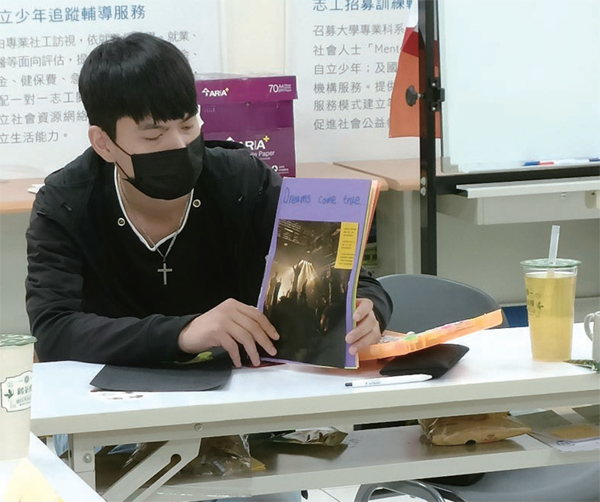 自謙不會說話卻想起一本書~「人生 的十個原則」,這本書裡面有社工給他 的一份期許,更多的是超越原生家庭的 愛,永遠記得書裡面的一句話:「人可 以笨,但不能懶惰」,時時刻刻提醒自 己在人生道路上的處世原則與態度,就 像社工們曾經不斷地叮囑言猶在耳,這 份溫暖也永存阿軒心底!