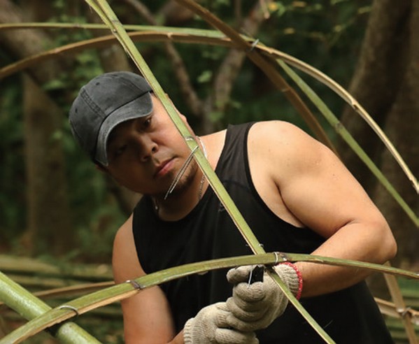 素材:由海洋意象所形成的隧道「海隧」,將與山的意象所形成 的「山隧」遇見,並透過兩條隧道相互匯集,最後形成一個被包圍的 環形空間。而空間之中會有一棵造型獨特的「樹」意味山海匯集之間 擁護著大地的使命。「海隧」的部分將利用海洋中取得的漂流木來構 成,以圓弧流線的形式呈現;「山隧」的部分則是利用山上成長的竹 子編織而成,以直線與方體作為展現。運用自然素材創作,讓民眾走 進作品内觀看與感受,或自由席地而坐和乘凉歇息。希望民眾透過與 作品的互動,進一步思考人與環境的互存價值。