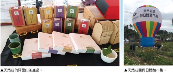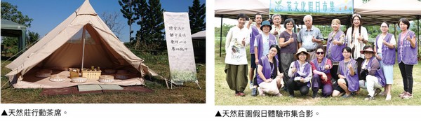 除了賣茶、品茶,天然莊也積極推廣 茶藝手作,期許透過地方創造更多產業經 濟來源,推動社區產業生機蓬勃發展。因 此在位於阿里山公路27.5k處成立了「天 然莊園假日體驗市集」,這是配合地方創 生推動城鄉特色產業發展計畫而開拓的社 區市集,以經營莊園的食農教育與茶染手 作以及復方香草養生茶品為主。目標是為 了將天然莊園從在地推向國際,讓手作體 驗工藝成為阿里山公路旁閃亮的產業特色 招牌。