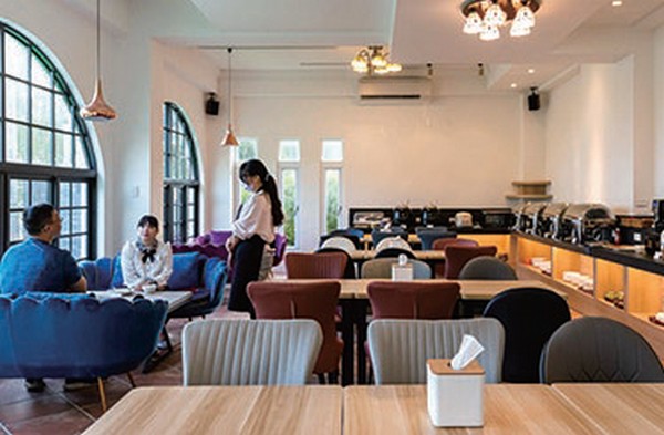 當滿滿的陽光灑入時,就是嗅覺被美味喚醒的時 刻,旅客可選擇寬敞的空間,還是臨窗而坐,都是開闊 餐廳空間給您的選擇,而多樣美味的中式菜式與精緻的 西式餐點,也都是滿足您味蕾的饗宴,美好的假期就從 微風星語的BUFFET開始!