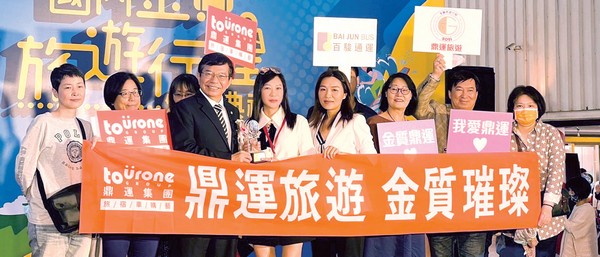 ▲鼎運旅遊初試金質獎,就獲得雙料金獎,由交通部長王國材(前排左3)頒發獎座。