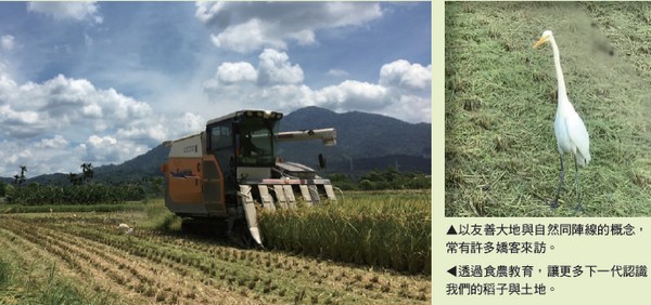 「鋤禾日當午,汗滴禾下土。誰知盤中飧,粒粒皆辛 苦」,英華、盈 婷夫妻也投入食 農教育,場域遍 佈各小學、社 區, 有機會就 將鄉村物產帶到 都會區與大家分 享,從耕耘、插 秧、管理、收 割、曬穀、風選到碾米到煮成香噴噴的 米飯,動手做三角飯糰,讓更多人暸解 稻米耕種過程,一起珍惜土地與文化, 享受純天然農田米糧。