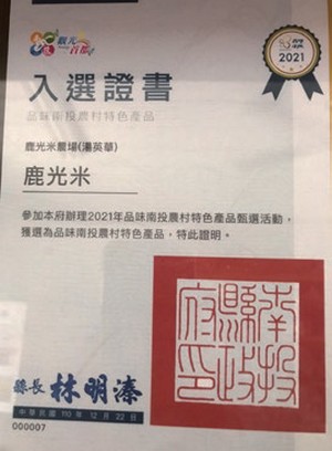 ▲「鹿光米」獲選為2021南投縣農村特色產品。