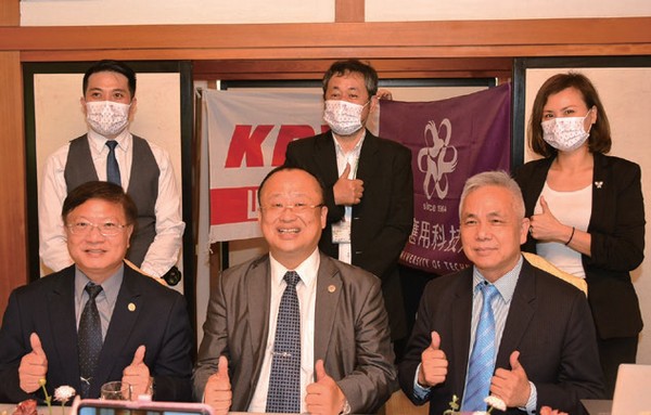 ▲(前排左起)西拉雅國家風景區管理處處長徐振能、台南應用科技大學校長黃宗成、金龍永盛旅行社總經理楊琮霖;(後排左起)台南應用科技大學推廣教育中心主任鄭傑夫、研發長紙矢健治、餐飲系主任兼養生休閒管理系主任方曉鈴。