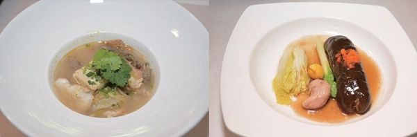▲鳳翅釀花菇銀耳。 ▲關仔嶺桶仔雞。