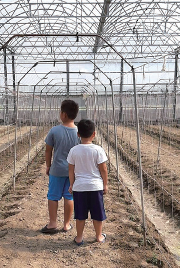 ▲水哥兩個兒子陪媽媽一起種新的果苗。
