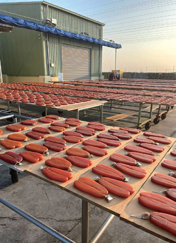 李欣記表示,烏魚子產業是相當辛苦的工 作,每到旺季期間,從凌晨3點一路忙到晚上 10點幾乎是司空見慣,但為了給予消費者更安 心的產品,他堅持不添加過多的添加劑,剔除 掉化學物質帶 來的負擔,同 時掌握氣候、 濕度、溫度等 完美拿捏,才 能創造出令消 費者滿意、令 製造者自豪的 烏魚子。