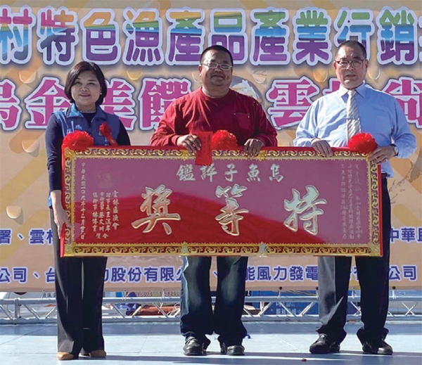 ▲承龍海產行李欣記(中)勇奪「烏魚子評鑑活動」特等獎。