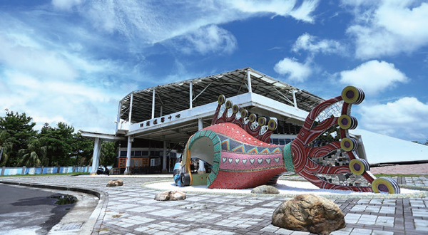 金湖休閒農業區運用雲嘉南濱海國家風景區管理處─口 湖遊客中心主要旅服據點,串聯起整個口湖地區濕地生態 園區,其外觀以水鳥振翅飛舞的美麗景象為設計構想,為 周圍空曠的草皮地景增添生命力,加上精巧的景觀設計, 使得人為建築與大地成功融合為一。
