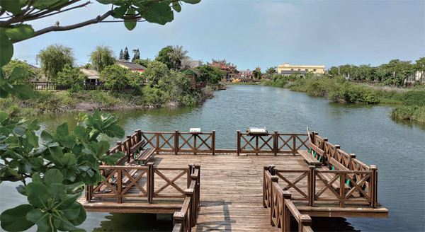 過去當地的水塘以灌溉使用為主,然而隨著居民生活廢水及畜牧 業汙水排放造成污染,加上種種因素導致人口外移,讓當地的水 井逐漸失去功用,所幸藉由水質改善工程而達到淨化目的,讓當 地反而因為保留了豐富的水鄉景緻,加上幽靜的氛圍,讓民眾能 悠遊於水塘木棧道更顯清閒,成為喜歡巷弄尋幽的人造訪首選。