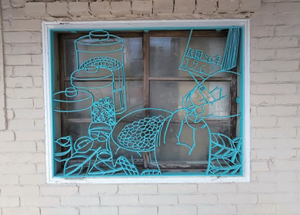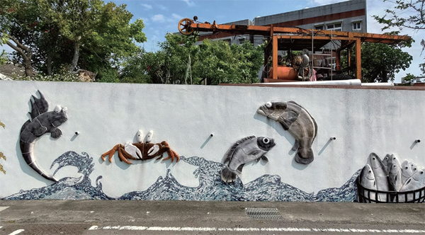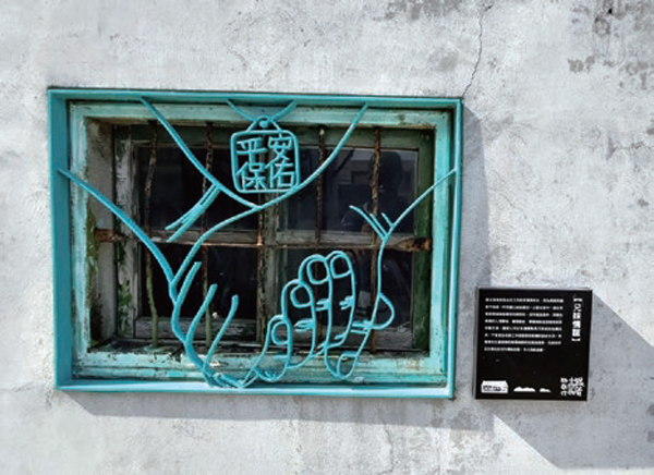 雲林口湖椬梧社區由鐵作藝術 家曾文昌操刀,將堅硬鐵條 經過創作變成柔軟的線條,化成 一面面故事鐵花窗,透過訪談了 解每一戶的生命故事,再將故事 轉換成鐵花窗的圖案,訴說10個 動人故事,並以「手」作為串連 故事的橋梁,成功融入在地的農 產稻米、甘蔗、地瓜等,還有代 表當地特色的醒獅、柑仔店等, 加上尾端的李萬居故居,成功串 聯成一個充滿故事性的社區,成 為別具特色的開放式博物館。