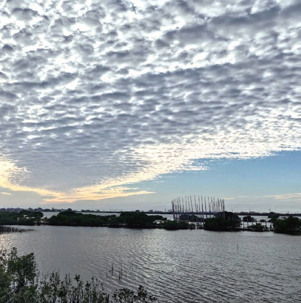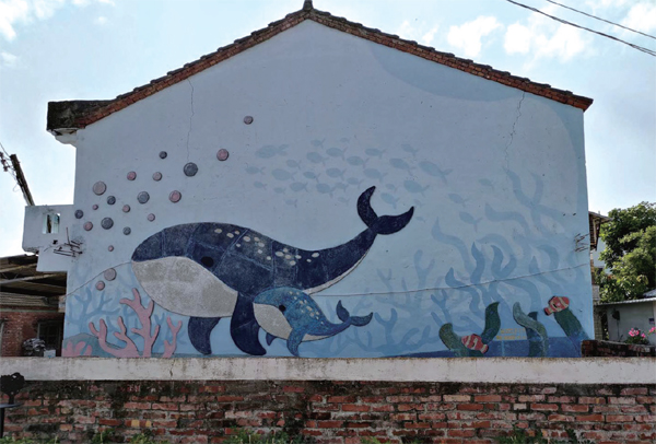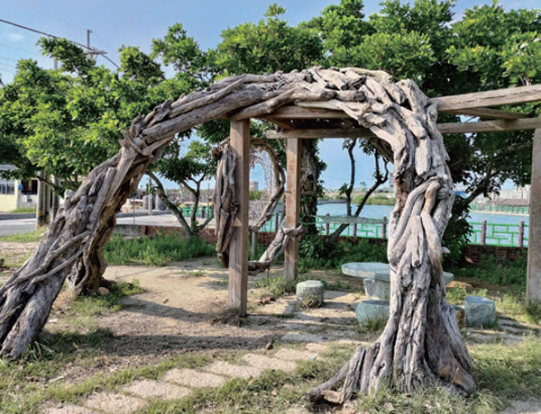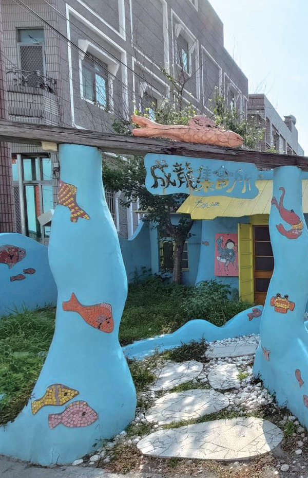 提到成龍社區,最具代表性的莫 過於成龍溼地,水面反射天空 的影像,搭配上多層次雲層、光線、 裝置藝術相互輝映,還有時不時的水 鳥平行而飛,讓整體有如「天空之 鏡」,成為熱門的打卡點。然而回首 過去,成龍社區原本是西南沿海再傳 統不過的農村,居民過著日出而作、 日落而息的田園生活,卻因為颱風的 侵襲,無情的風雨將數十公頃的良田 沖成一片汪洋,許多房屋淹沒於水平 線下,至今高高低低的屋子成為奇 景,加上一池池的魚塭,就如同水鄉 澤國。所幸一場水患讓當地重新審視 土地環境與保育,透過栽種紅樹林 等,積極打造濕地生態,加上邀集各 地藝術家的創意揮灑,讓成龍社區的 每個角落重新蛻變出新生命。