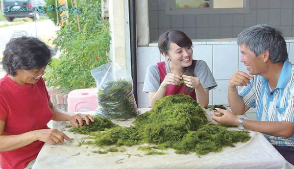 造訪金湖休閒農業區能夠親近土地、親近人情,多樣化的農產 包括黑豆、黃豆、白米、地瓜等都能以自然農法讓土地重新活化的 方式種植,遊客們走進產地看到耕種方式能安心食用。漁業方面則 有鰻魚養殖、烏魚子加工、文蛤種苗繁殖、馬蹄蛤復育、龍膽石斑 及白蝦等,透過遊程安排親自下水體驗摸蛤、抓蝦是產地獨有的體 驗。