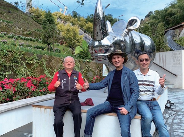 ▲(左起)嘉義縣梅山鄉太平村長嚴清雅、台灣雕塑藝術家施力仁、有限責任嘉義縣梅山鄉太平社區產業合作社總經理張世昌。
