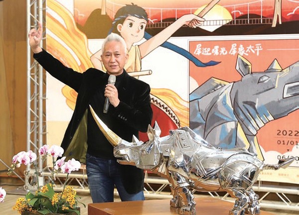 自古犀牛就以其渾圓壯碩的體態加上 昂揚向上的犀牛角,被人們認為是上古神 獸,甚至有「犀牛鎮家靈,望月迴天庭, 殷誠月兒圓,財神來光臨」的順口溜。施 力仁以這個長期被神話描述為仁獸象徵嘉 瑞之兆的犀牛作為創作主題,從傳統型塑 的《犀牛家族》到性格獨特的《金鋼犀 牛》、《哈雷金鋼》、《元寶犀牛》,每 一件作品都擁有與眾不同的性格。