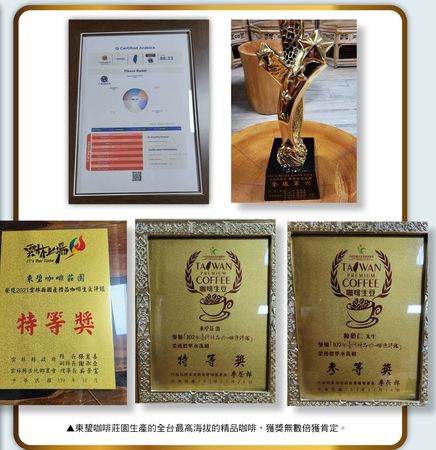 ▲東𤧥咖啡莊園生產的全台最高海拔的精品咖啡,獲獎無數倍獲肯定。