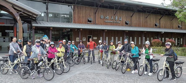 ▲旅客從池上車站出發體驗電動輔助自行車之旅。