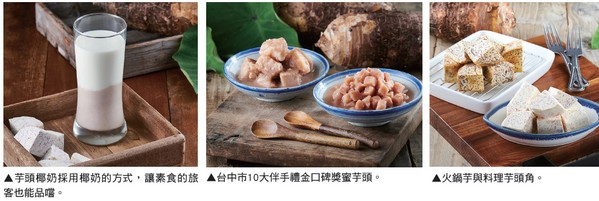吳倢葇指出,小時候芋頭都是吃鹹的, 最多放3天,但是我希望這麼好的芋頭可 以分享到更遠的地方去,想要吃隨時都可 以吃的到,所以就創意發想製作芋頭椰奶 飲品,採用台中大甲檳榔心芋頭,炊蒸之 後乾燥,好幾層工序與工序,一直到形 成芋頭粉,全部都是採用真正的芋頭當原 料,保證新鮮、產地直送。因為大甲的芋 頭有一個特別的風味,因此芋頭椰奶一 定要採用大甲檳榔心品種,才會香醇、好 喝,也順利成為台中10大伴手禮的首獎。