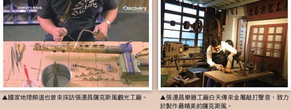 第一把薩克斯風按圖索驥完成後,憑 藉著對音樂的熱愛與執著,張連昌廣收學 徒,開始樂器製作旅途。白天金屬敲打聲 音此起彼落的樂器小店,夜幕降臨悠揚的 薩克斯風樂曲就開始在后里街道上飄揚。下了工的學徒們,跟著張連昌看譜演奏, 不僅讓學徒們感受樂器的生命,間接又促 成后里成為一個樂師集散地。 隨著張連昌徒子徒孫開枝散葉,后里慢 慢變成一個國際知名的薩克斯風生產地。