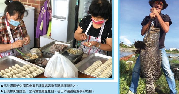 水餃銷售在台灣有強大市場,更是婆婆 媽媽家常必備的經典美食之一,不同 內餡的餃子帶來不同的味蕾享受!台南市 將軍漁港的「海中央小舖」,由馬沙溝觀 光休閒協會經營,透過協助申請勞動部多 元就業開發方案,讓社區媽媽們重返職場 發揮長才,同時開發冷凍食品,繼先前的 「火燒蝦水餃」後,眼見台灣石斑魚在外 銷上的困境,與西濱商圈產業觀光協會合 作,向漁民訂購50公斤的石斑魚肉,預計 製作3萬顆石斑魚水餃,用行動力挺產業。