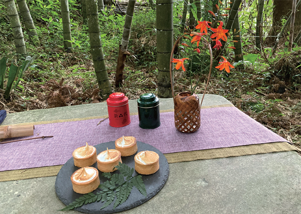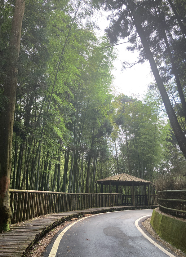 想感受瑞里滿滿的綠竹林蔭大道,傾聽竹葉隨風飛舞的沁涼 聲響嗎?來到若蘭山莊後方的綠色隧道,是一條竹杉林環狀 步道,除了是維繫產業農用要道,也是瑞里熱門的健行路 線,除了春天的紫藤 花季,夏秋時節可體 驗由瑞里社區安排年 輕職人茶師進行茶席 時光,在宛如武俠片 的場景裡,聆聽年輕 人對茶產業與家鄉的 熱愛。