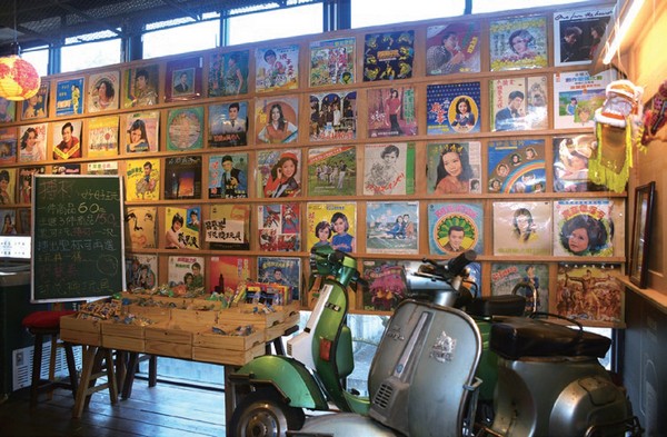 ▲走進五姨婆手作客棧就能聽到黑膠唱片的復古音樂,以及一整面的黑膠唱片展示。