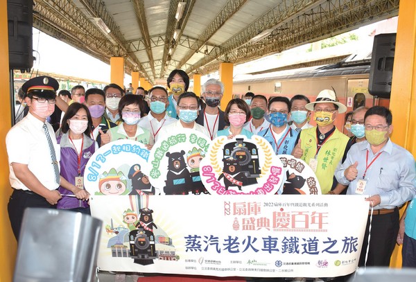 歡慶彰化扇形車庫百周年,交通部 觀光局參山國家風景區管理處與彰化市 公所共同舉辦「2022扇庫百年暨鐵道觀 光系列活動」,其中廣受市場矚目的蒸 汽火車鐵道遊程活動,8╱13啟動第1梯 次列車,由DT-668「國王號」蒸汽火車頭牽引DR3000自強號6節車 廂,搭載260多名幸運購票 的遊客,在九天民俗技藝團 戰鼓擂動聲中,由觀光局局 長張錫聰、立委黃秀芳、立 委陳素月、彰化縣副縣長洪 榮章、彰化市市長林世賢、 行政院政務顧問邱建富、二 水鄉長蘇界欽、第四河川局 長李友平、參山國家風景區 管理處處長曹忠猷、中彰觀 光圈(中彰區域觀光聯盟) 總召集人柴俊林、副總召集人吳世長、 計劃主持人吳政和、竹竹苗觀光圈(竹 竹苗區域觀光聯盟)總召集人江百松等 代表共同鳴笛下,蒸汽火車頭緩緩開動 前往二水,重現蒸汽火車行駛縱貫線場 景,現場鐵道迷和遊客擠爆月台,爭相 拍下歷史性的畫面。