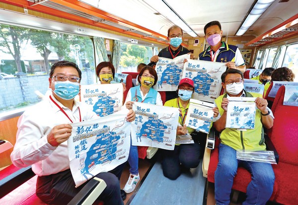 ▲(第1排左起)臺灣鐵路管理局彰化站站長王河傑、彰化縣政府城市暨觀光發展處處長王瑩琦、立委陳素月、觀光局局長張錫聰、立委黃秀芳、彰化縣副縣長洪榮章、彰化市市長林世賢、行政院政務顧問邱建富。(第2排左起)彰化縣二水鄉公所鄉長蘇界欽、經濟部水利署第四河川局局長李友平、竹竹苗觀光圈總召集人江百松、中彰觀光圈總召集人柴俊林、中彰觀光圈副總召集人吳世長、臺灣鐵路管理局臺中運務段段長蘇鎮霖、參山國家風景區管理處處長曹忠猷。