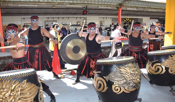 ▲「2022扇庫百年暨鐵道觀光系列活動」之蒸汽火車鐵道遊程活動,8╱13第1梯次列車,在九天民俗技藝團戰鼓擂動聲中啟動。