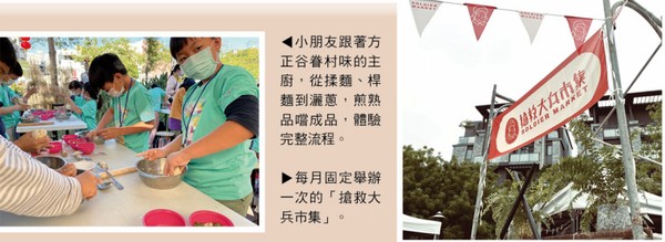而方正谷眷村味也特別復刻「糧票換糧 食」的制度,推出蔥油餅DIY的體驗,是當 時眷村居民用換來的糧食,做成的包子、饅 頭、蔥油餅、麵條各式主食的故事。旅客現 在可以跟著方正谷眷村味的主廚,從揉麵、桿 麵到灑蔥,煎熟品嚐成品,體驗完整流程,並 拍下美好照片與學習單放在一起,作為紀念 品。旅行社或是自由行的旅客也能跟臺中市眷 村文物館預約導覽眷村館舍、品嚐眷村菜與 DIY體驗,一次約可接待30名旅客,分為早上 10點場與下午3點場,各1小時的體驗課程。