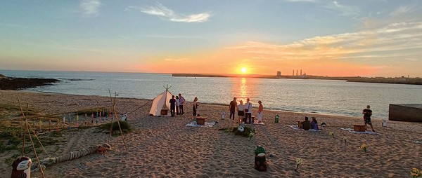 最終章用心感受龍門的純粹,夕陽西 下的龍門,在神秘的小海灣上用餐,伴隨 著音樂、火把、美食,這頓美食可是社區 媽媽拿手的私房菜,更是一場產地到餐桌 的實踐之旅,菜色有:小卷絲瓜麵線、螺 肉、菜干炒肉、辣炒丁香魚、漁夫煎蛋、 皇帝飯、湖西花生、澎湖香瓜、洛神花精 釀啤酒等9道風土料理。隨著夕陽西下微 風徐徐,看著漁火進出漁港,收拾本日的 心情隨落日沈澱,為永續乾杯。