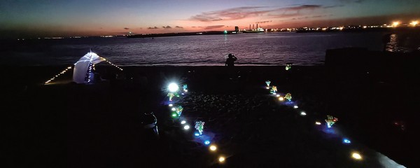 ▲夜晚的龍門沙灘上布置點點燈光好不浪漫。