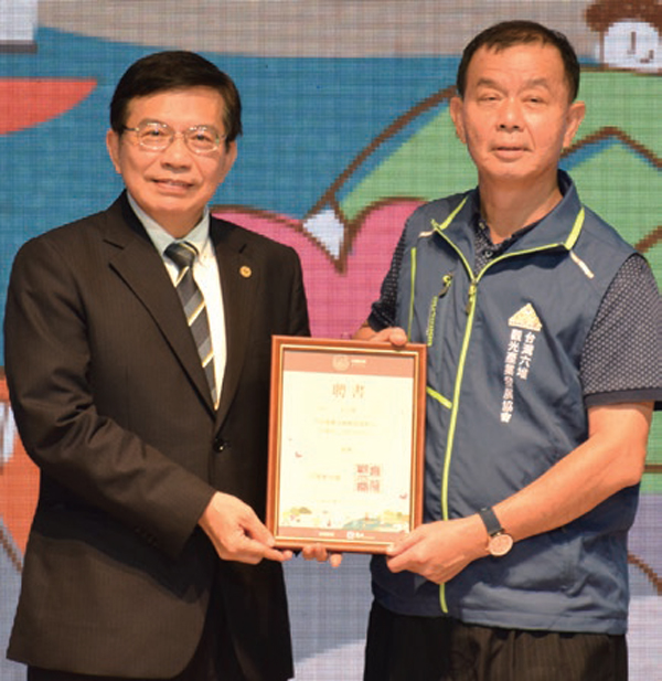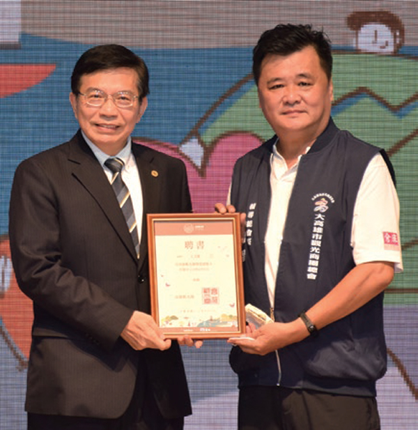 由交通部部長王國材(左)頒授高雄觀光圈幹部證書
