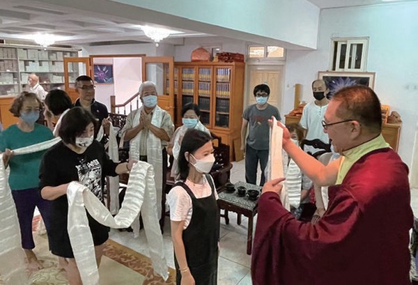 ▲噶瑪噶居寺上師洛 本仁波切(右1)特 別接待總裁假期的團 員。